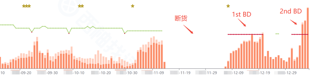 - In the first round of BD, due to the remaining ranking before the out-of-stock, there was an immediate breakthrough; in the second round of BD, the listing broke through again based on the first round, and organic traffic returned to or even exceeded its peak, even surpassing historical levels.
