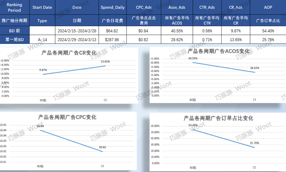 ▲ Improved Advertising Efficiency : Leveraging the high traffic and high authority of Woot, advertising KPIs have been significantly improved, with ACOS down 29.42% and CR up 38.29%;
