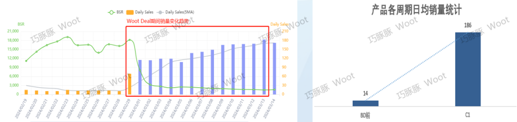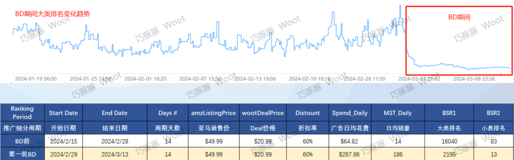 - Main category BSR ranking increased from 16,000+ before the deal to 2,100+, and subcategory ranking increased from 83rd to 13th, greatly improving listing competitiveness
