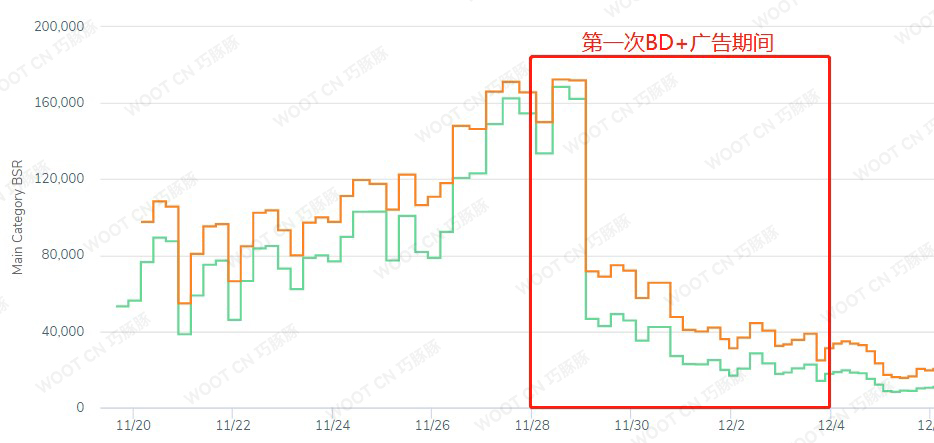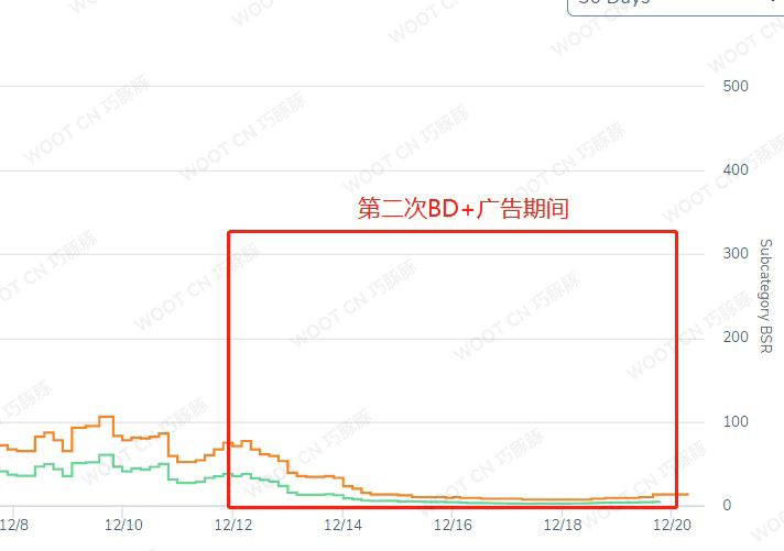 ▲Both main and subcategory rankings improved significantly. The main category BSR ranking increased from 148939 before the first deal to 1888 after the second BD. The subcategory ranking increased from 415 to 15, significantly enhancing the listing's competitiveness.