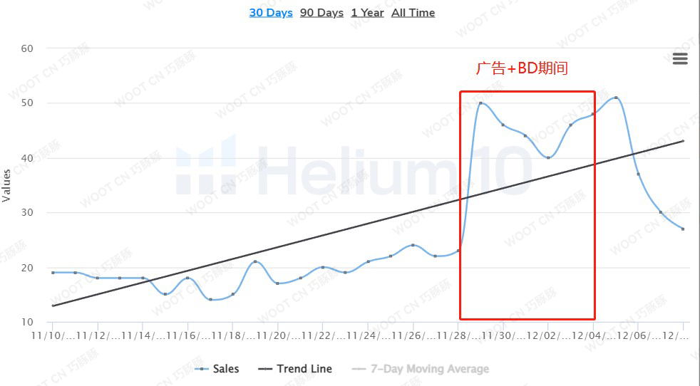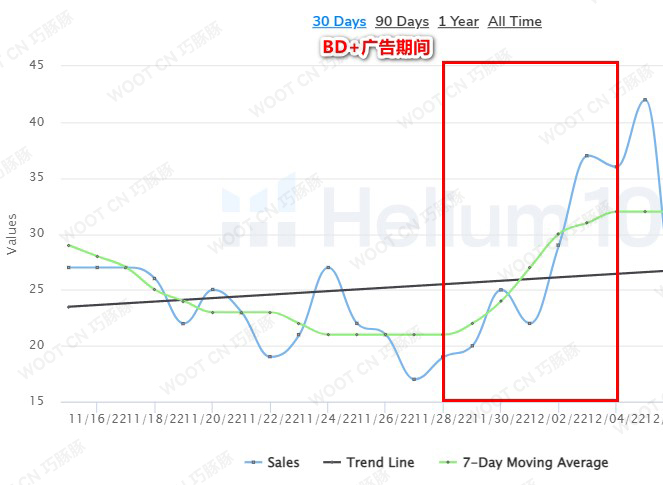 ▲ This product showed a significant increase in sales on WOOT BD, compared to the week before the BD, daily sales increased by 50%