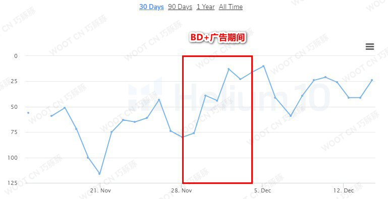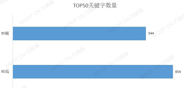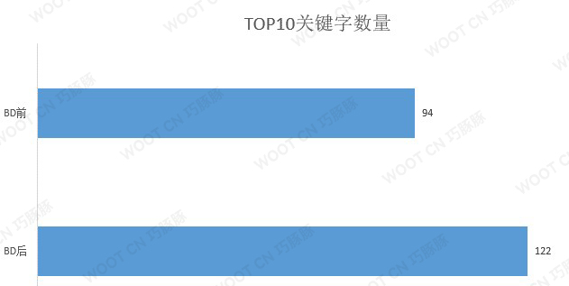 ▲ During the WOOT BD + advertising period, the number of Top 10 keywords increased from 94 to 122, an increase of 30%;