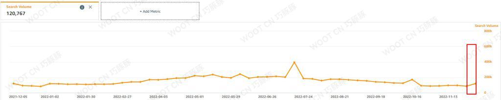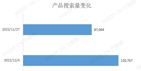 ▲ From 2022/11/27 to 2022/12/4, the product search volume increased from 87064 to 120767, an increase of 39% , indicating increased demand, which is conducive to product promotion;